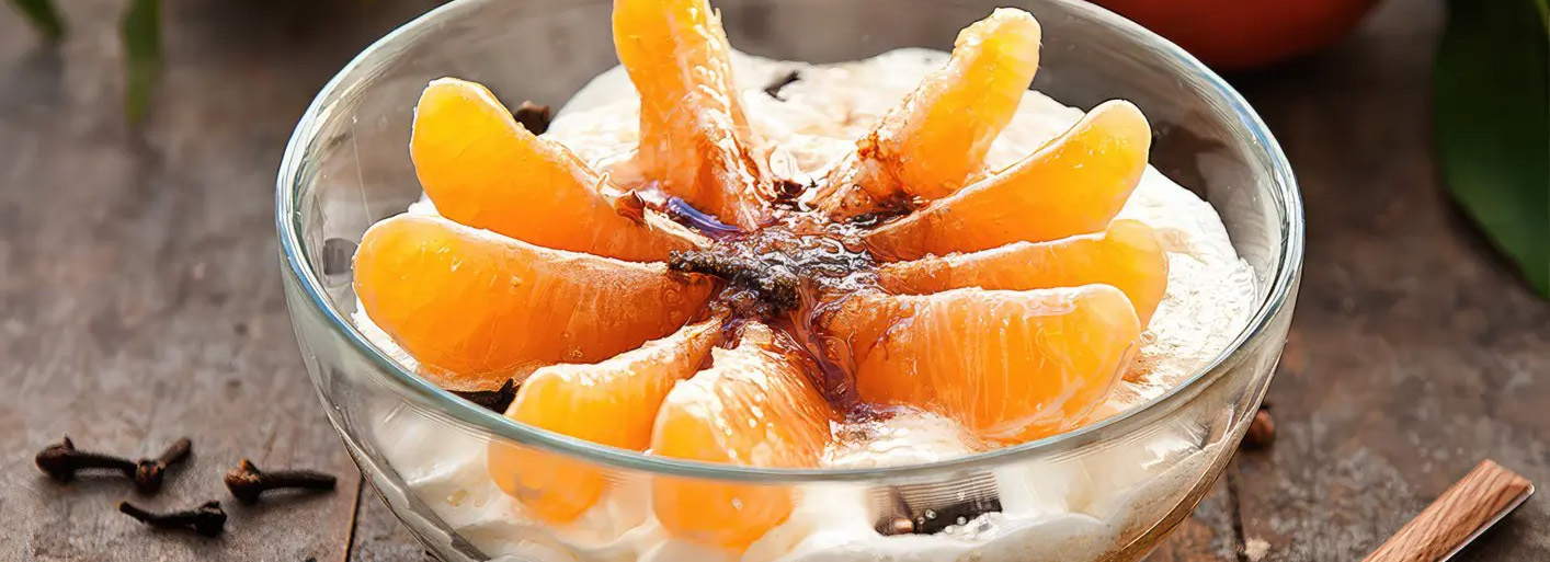 4. Pour the hot syrup on the clementines and spices. Cool and serve with fresh cream or vanilla ice cream. Bon Appetit!