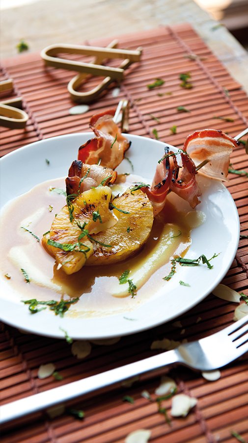 • Grilled pineapple with bacon.