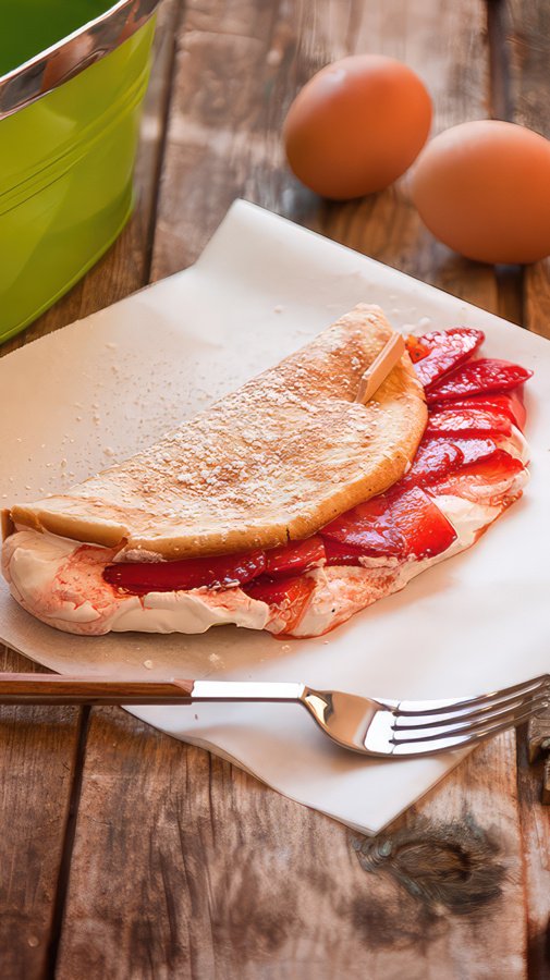 Sweet strawberry omelet – a light and fluffy omelet filled with fresh strawberries for a fruity dessert.