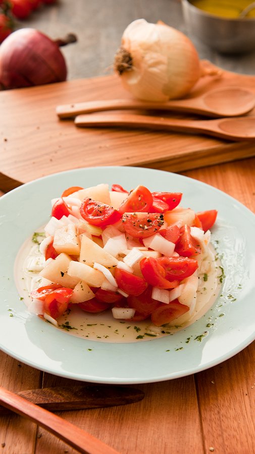 Summer melon and tomato salad – a refreshing, juicy, and vibrant dish perfect for warm days