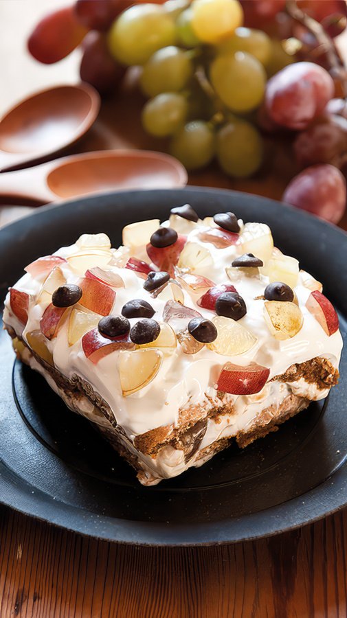 Sweet grape tiramisu topped with fresh grapes and cream – a fruity twist on the classic Italian dessert