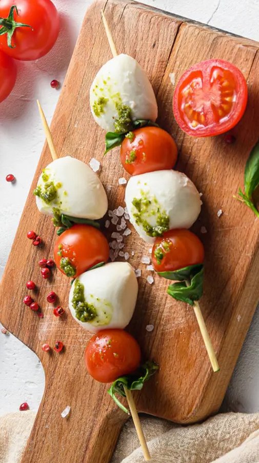 - Tomaten-Mozzarella-Spieße mit Pesto.